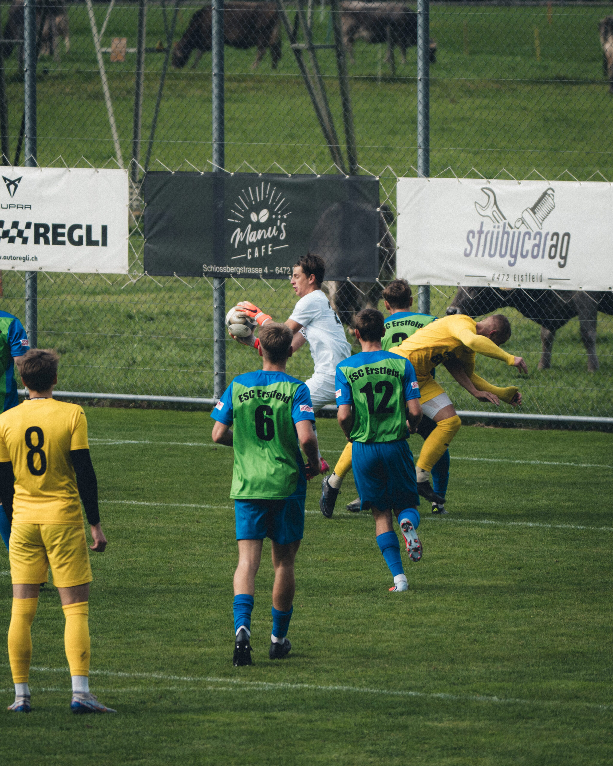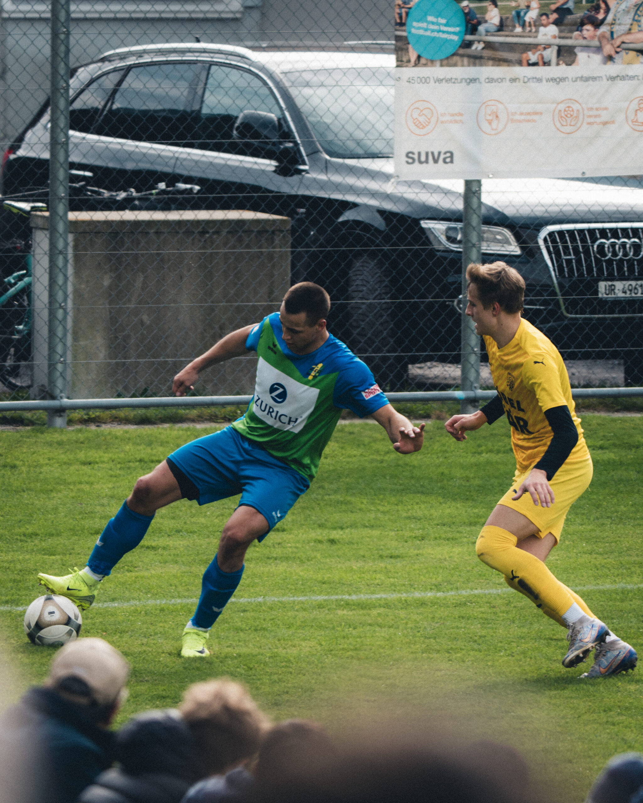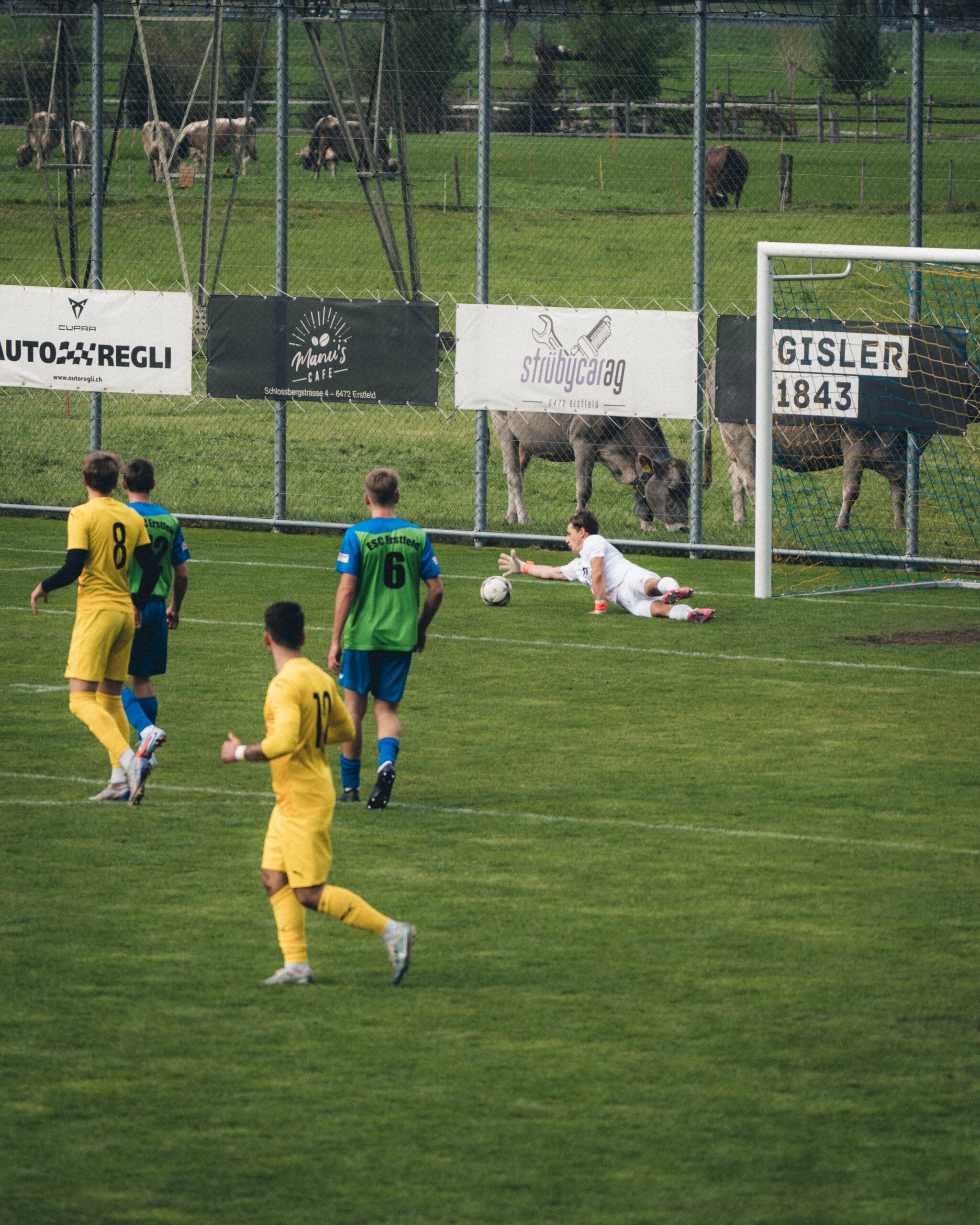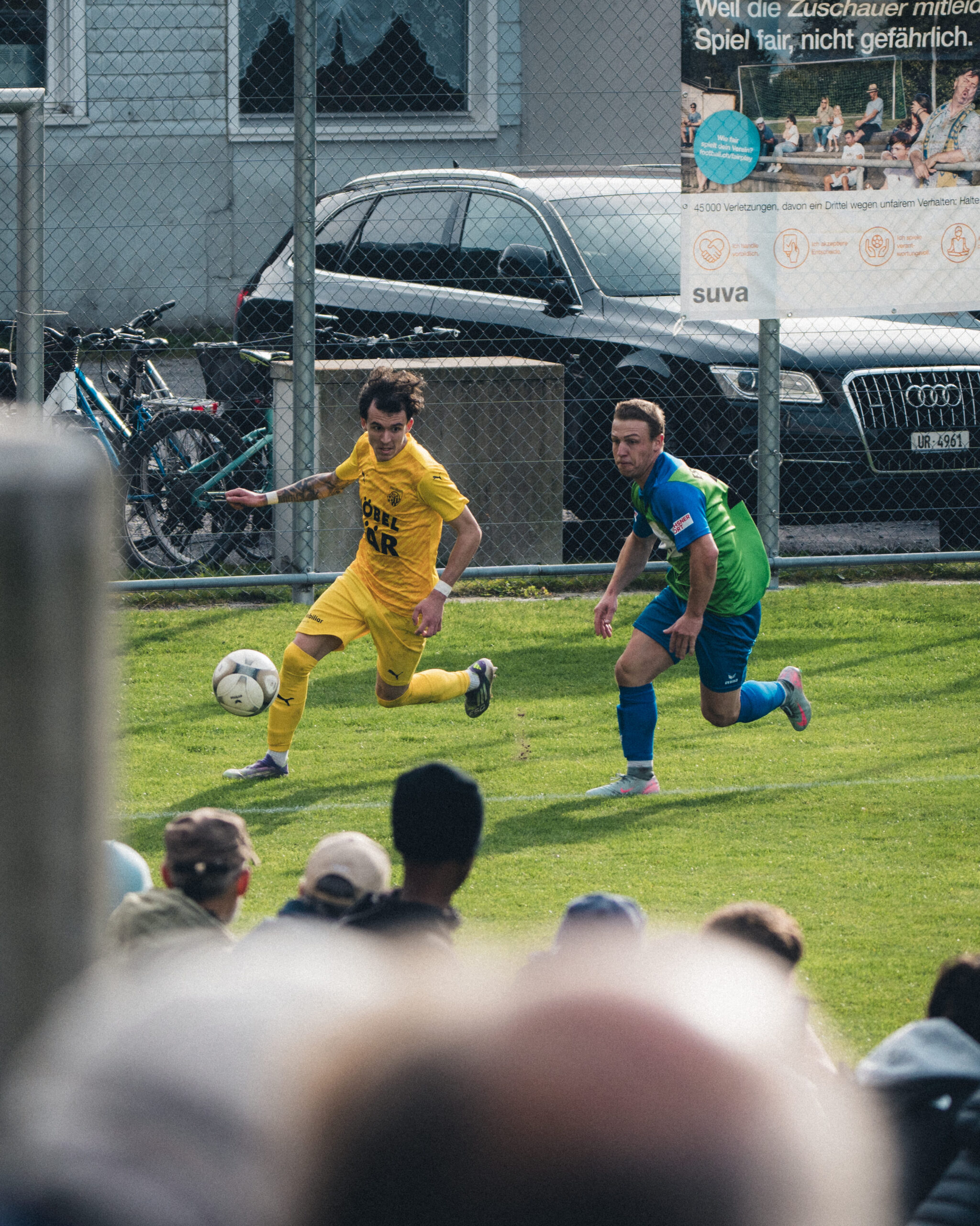 Bei angenehmen Temperaturen startete die Partie mit einem leichten Chancenplus für den ESC. Schon in der 1. Minute tauchte Matteo Zgraggen nach einem langen Ball gefährlich vor dem Tor auf, wurde aber im letzten Moment gestoppt. Auf der Gegenseite sorgte ein Eckball von Altdorf früh für Gefahr. In der 13. Minute dann die erste brisante Szene: Zgraggen wurde als letzter Mann vor dem Torhüter klar gefoult, doch der Altdorfer Verteidiger kam mit einer Gelben Karte davon – eine äusserst diskutierte Entscheidung. Trotz einer insgesamt ausgeglichenen ersten halben Stunde zeigte sich Erstfeld in den entscheidenden Momenten kaltblütiger. Nach einem Eckball von Gian-Luca Tresch köpfte Simon Muoser in der 17. Minute zur 1:0‑Führung ein. Knapp zwanzig Minuten später war es erneut Muoser, der nach einem Freistoss von Tresch am schnellsten reagierte und auf 2:0 erhöhte Die Freude währte jedoch nur kurz: In der 37. Minute profitierte Altdorf von einer unübersichtlichen Situation im Strafraum und erzielte den 2:1‑Anschlusstreffer. Kurz vor der Pause kam es zu einer unschönen Szene: ESC-Torhüter Nils Loretz hatte den Ball bereits sicher am Boden, als ein Altdorfer Stürmer ohne abzubremsen in ihn hineinlief und ihn am Kopf traf. Der Erstfelder Schlussmann blieb liegen und musste gepflegt werden, doch zur Überraschung vieler blieb die Aktion ohne Konsequenzen für Altdorf.