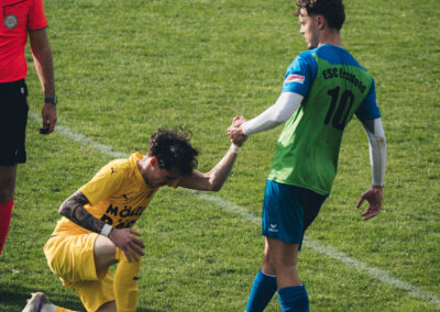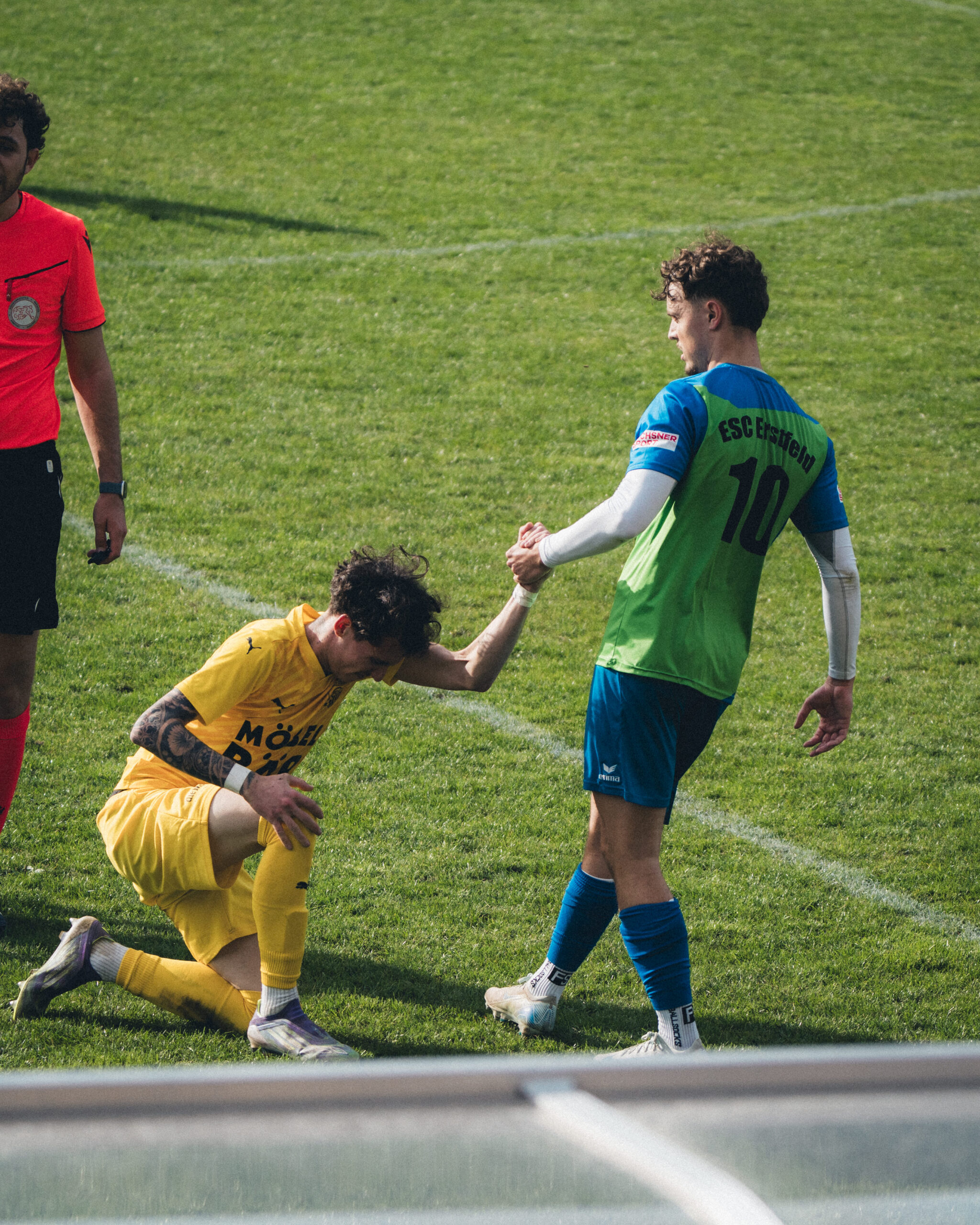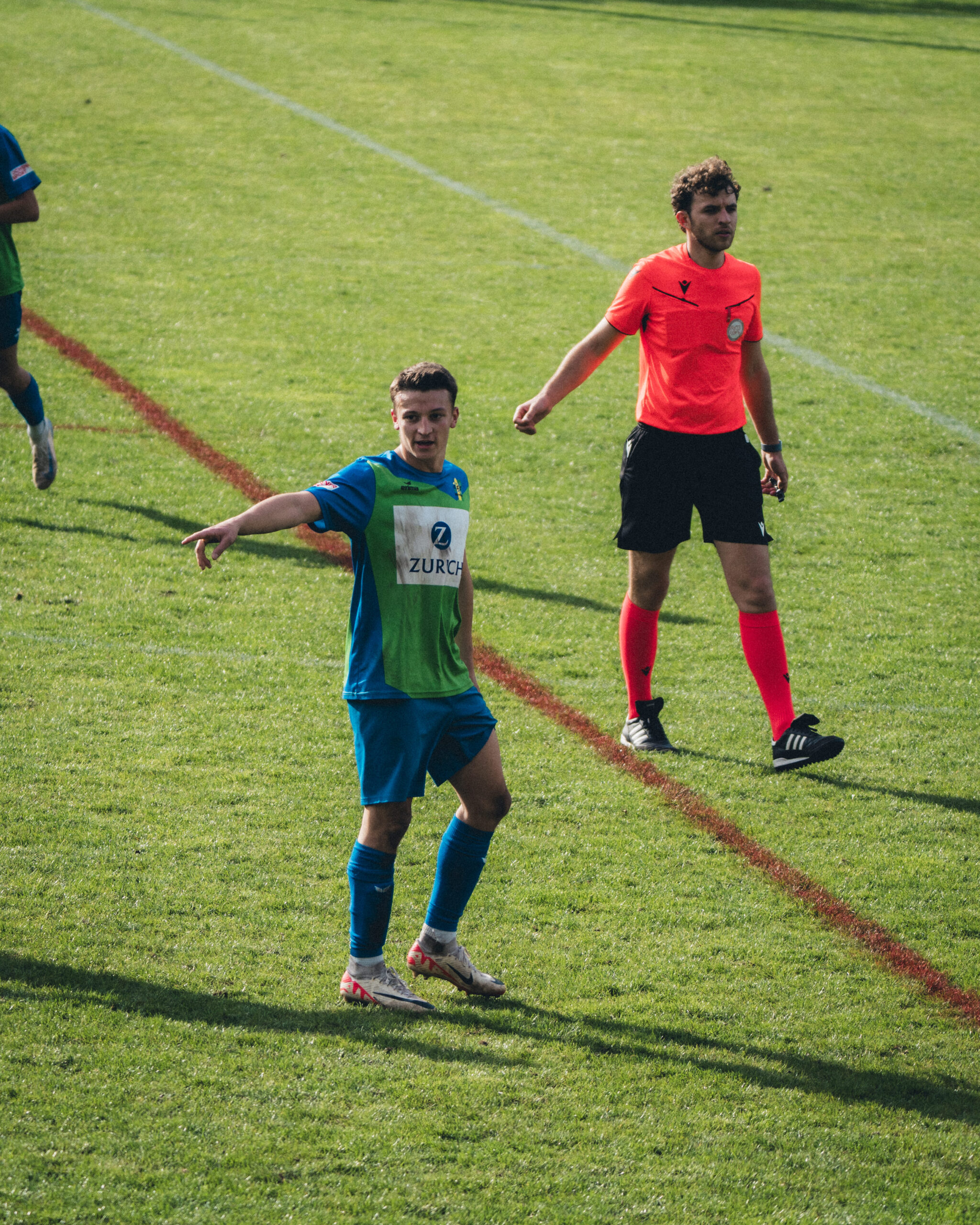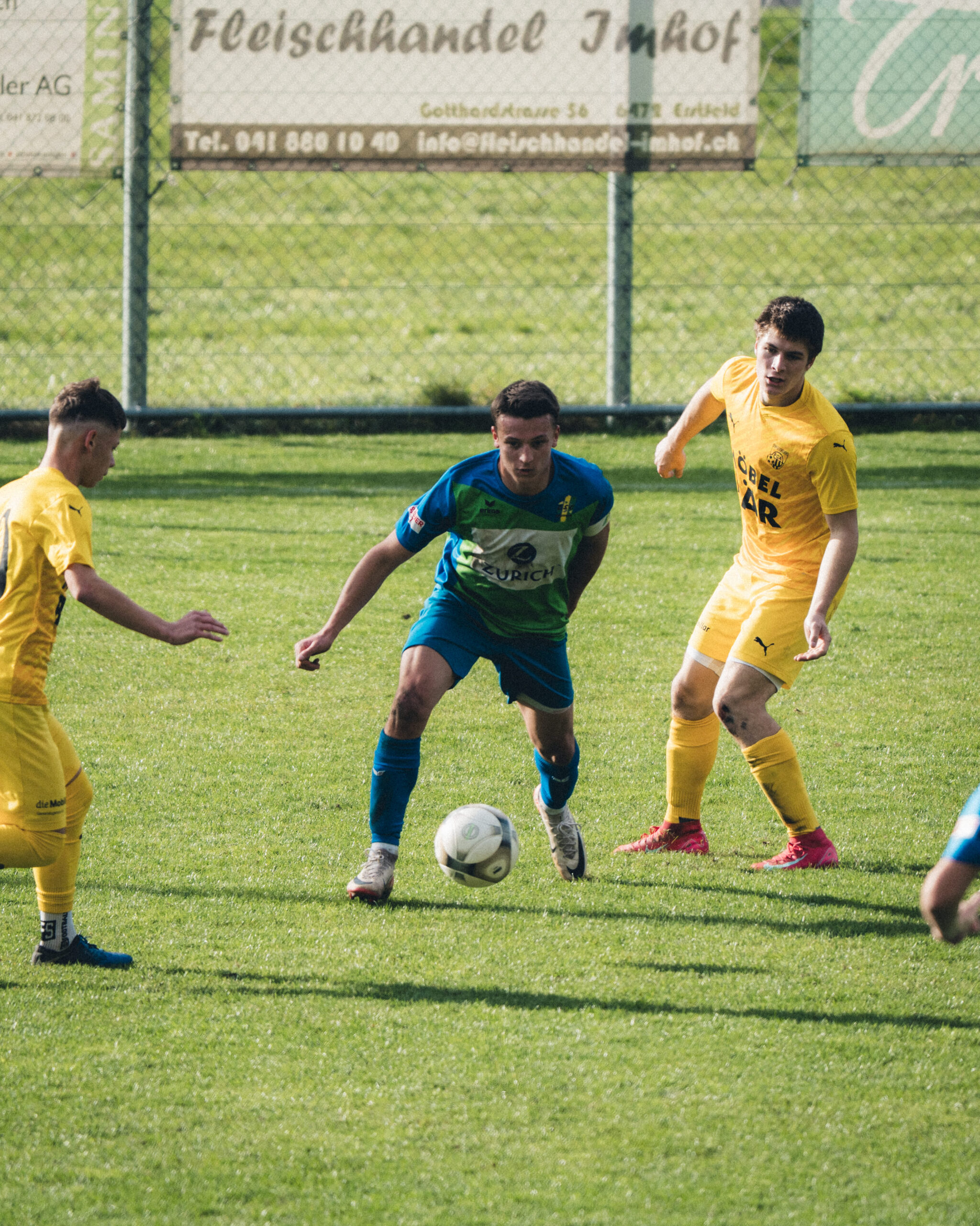 Bei angenehmen Temperaturen startete die Partie mit einem leichten Chancenplus für den ESC. Schon in der 1. Minute tauchte Matteo Zgraggen nach einem langen Ball gefährlich vor dem Tor auf, wurde aber im letzten Moment gestoppt. Auf der Gegenseite sorgte ein Eckball von Altdorf früh für Gefahr. In der 13. Minute dann die erste brisante Szene: Zgraggen wurde als letzter Mann vor dem Torhüter klar gefoult, doch der Altdorfer Verteidiger kam mit einer Gelben Karte davon – eine äusserst diskutierte Entscheidung. Trotz einer insgesamt ausgeglichenen ersten halben Stunde zeigte sich Erstfeld in den entscheidenden Momenten kaltblütiger. Nach einem Eckball von Gian-Luca Tresch köpfte Simon Muoser in der 17. Minute zur 1:0‑Führung ein. Knapp zwanzig Minuten später war es erneut Muoser, der nach einem Freistoss von Tresch am schnellsten reagierte und auf 2:0 erhöhte Die Freude währte jedoch nur kurz: In der 37. Minute profitierte Altdorf von einer unübersichtlichen Situation im Strafraum und erzielte den 2:1‑Anschlusstreffer. Kurz vor der Pause kam es zu einer unschönen Szene: ESC-Torhüter Nils Loretz hatte den Ball bereits sicher am Boden, als ein Altdorfer Stürmer ohne abzubremsen in ihn hineinlief und ihn am Kopf traf. Der Erstfelder Schlussmann blieb liegen und musste gepflegt werden, doch zur Überraschung vieler blieb die Aktion ohne Konsequenzen für Altdorf.